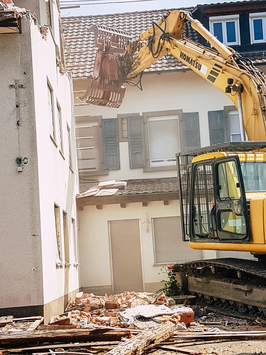 Der Abbruch/ Rückbau eines Gebäudes klingt nach Abrissbirne, doch der Rückbau muss exakt und mit System schon vor Beginn der Maßnahme geplant sein.